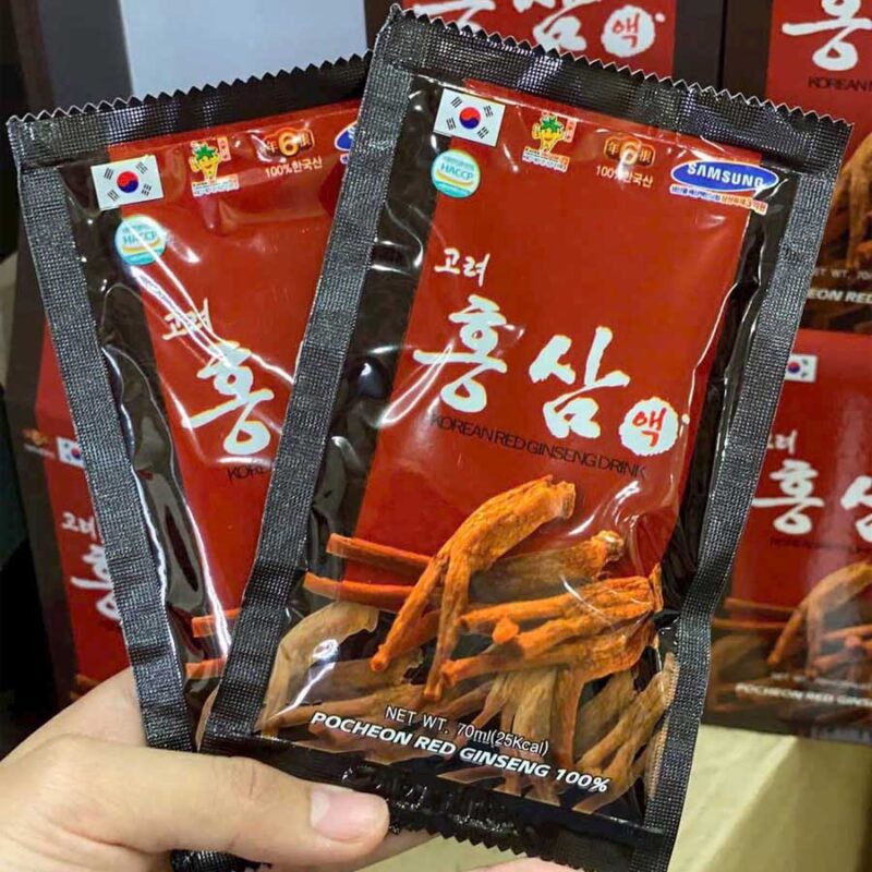 Mỗi ngày uống 1-2 lần vào buổi sáng và trưa , mỗi lần 1 gói nước hồng sâm Pocheon Hàn Quốc.