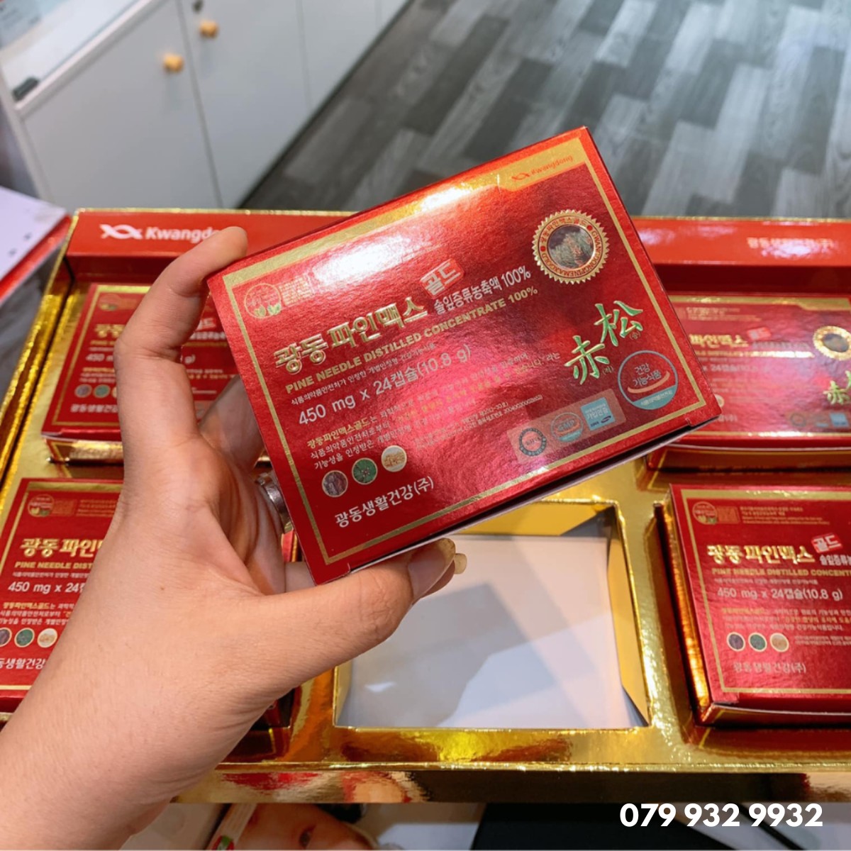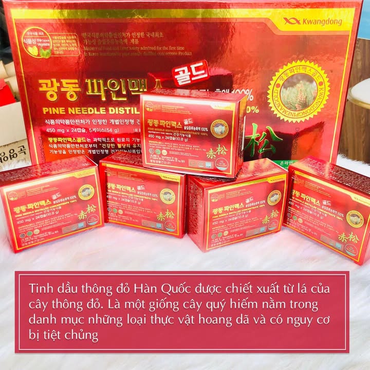 Tinh Dầu Thông Đỏ Kwangdong 120 Viên Hàn Quốc được chiết xuất 100% từ lá cây thông đỏ là loại cây được các bác sĩ đông y đánh giá rất cao trong việc hỗ trợ điều trị các bệnh về tim mạch, gan, suy thận, huyết áp, tiểu đường và phòng trừ, hỗ trợ điều trị các bệnh nguy hiểm như ung thư. Được bào chế và đóng gói ở dạng viên dễ dàng sử dụng và uống tại chỗ làm việc hay thuận tiện mang theo khi đi du lịch để tăng cường, cải thiện sức khỏe vô cùng hiệu quả.